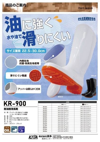 新商品KR-900 耐油耐滑長靴が入荷しました。