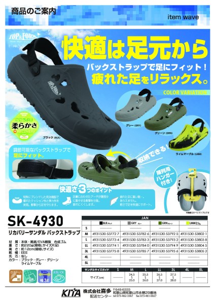 新商品SK-4930リカバリーサンダル バックストラップが入荷しました。