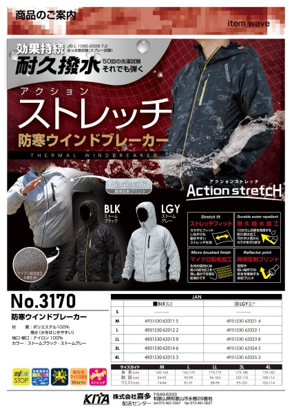 新商品 No.3170 アクションストレッチ防寒ウインドブレーカーが入荷しました。