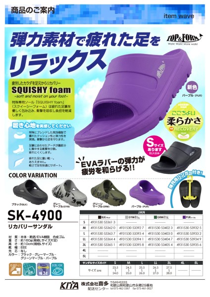 SK-4900リカバリーサンダルに新色パープルが入荷しました。